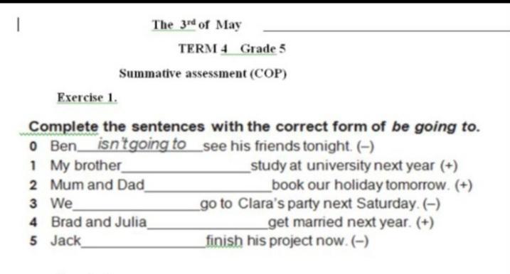 Ответ:1) is going to2) are going to3)are;t going to 4)are going to 5) isn't going to