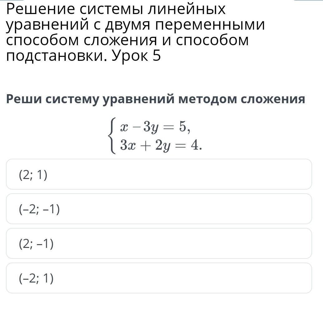 Решение системы линейных уравнений с двумя переменными способом сложения и способом подстановки. Урок 5