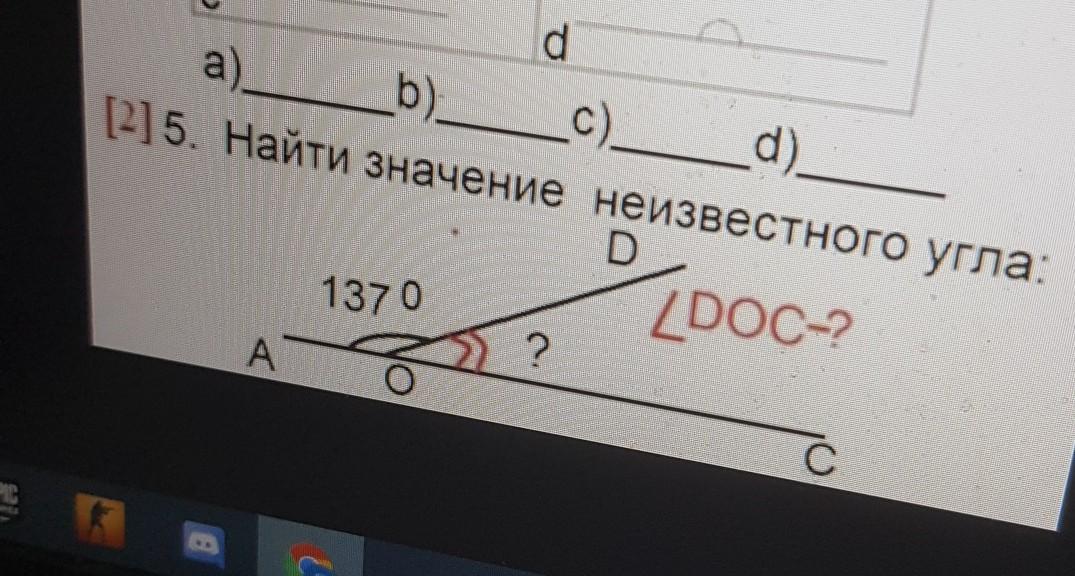 АОС (180⁰) - АОD(137⁰)= 43⁰
