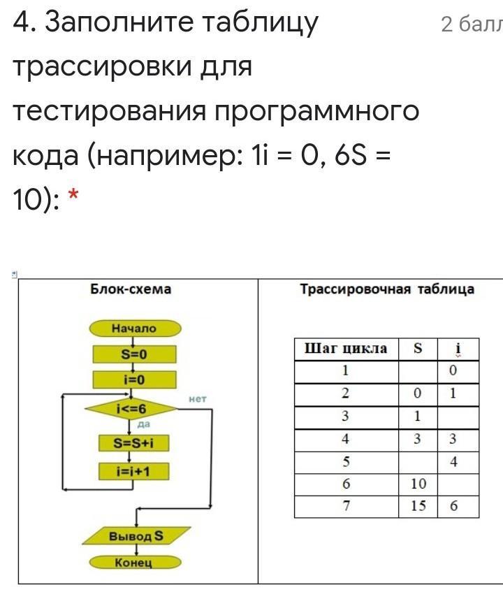 Заполните таблицу трассировки для тестирования программного кода (например: 1i = 0, 6S = 10): * помогите срочно пожалуйста ❤