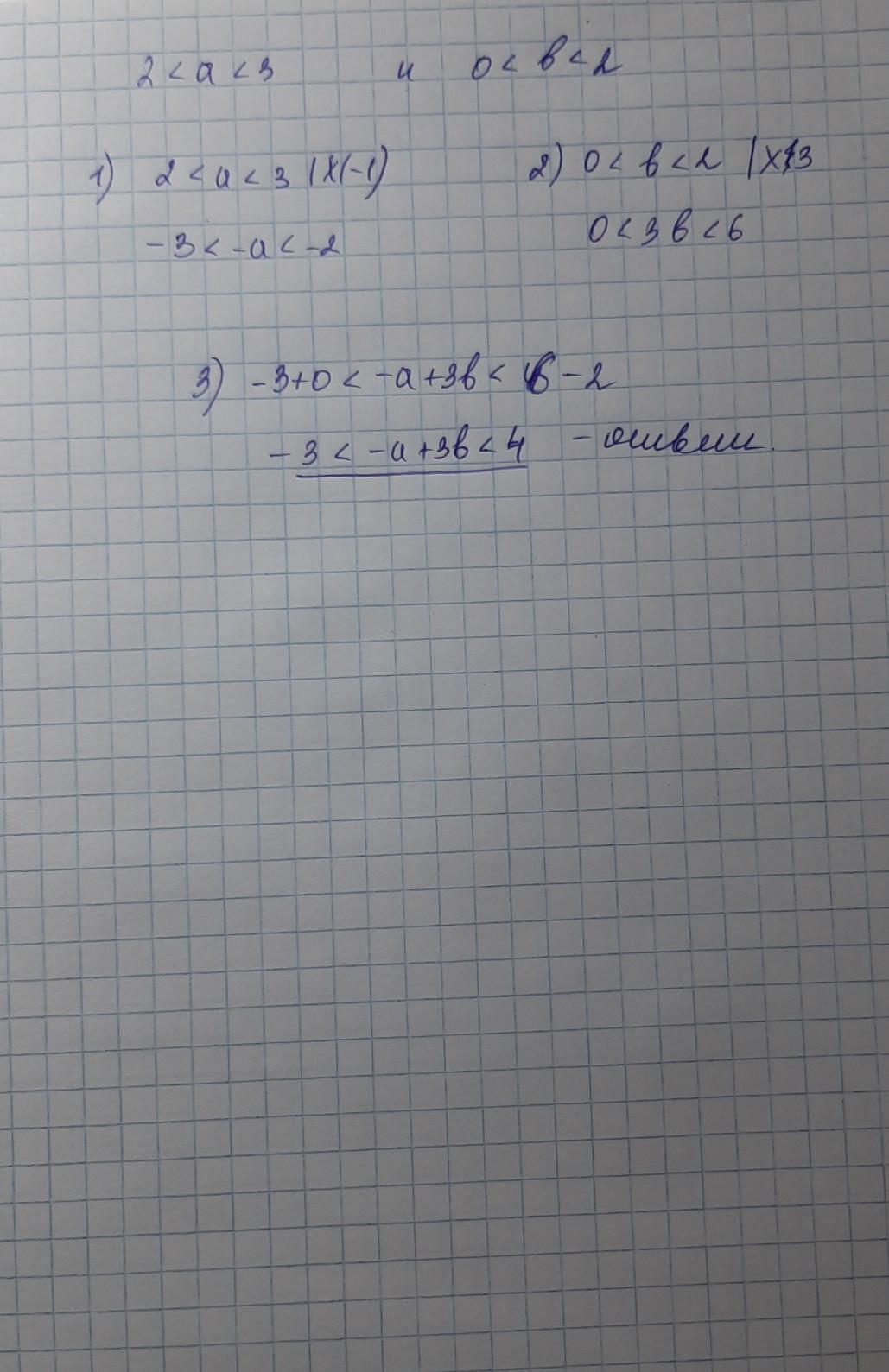 Нужно домножить 2 неравенство с "а", на -1(Не забудьте поменять после умножения числа местами в данном случае!), потом домножить неравенство с "b",а потом их сложить, и Perfect! у вас есть ответ
