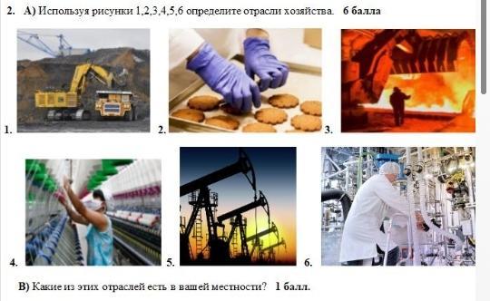 2. А) Используя рисунки 1,2,3,4,5,6 определите отрасли хозяйства.