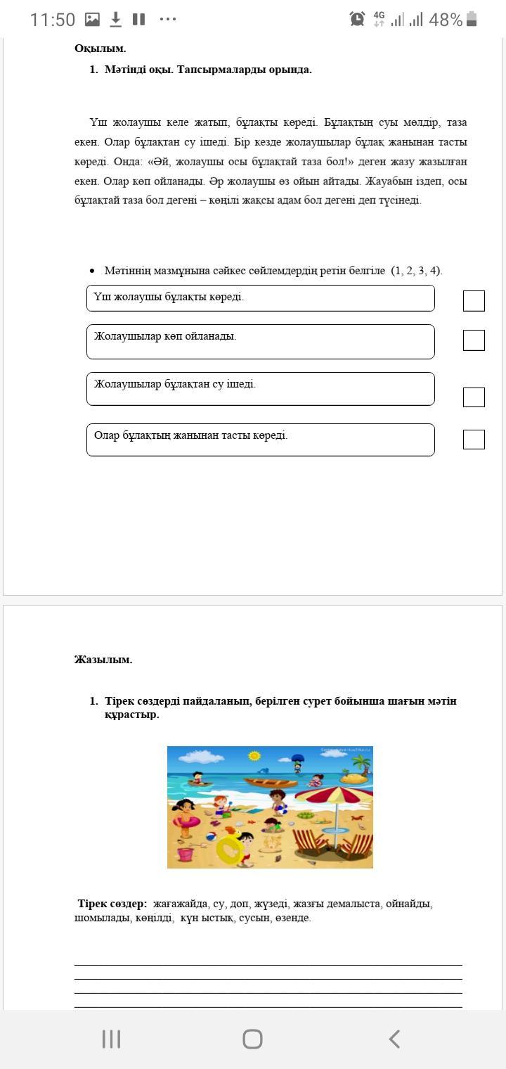Жагажайда балалар ойнап жатыр Олар суга шомылады, доппен ойнайды, жузеди.Олар оте конилди .Балалар жазгы демалысты жаксы откизеди