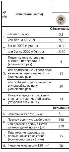 Сколько всего необходимо выполнить испытаний по IV ступени для получения бронзового знака ГТО?