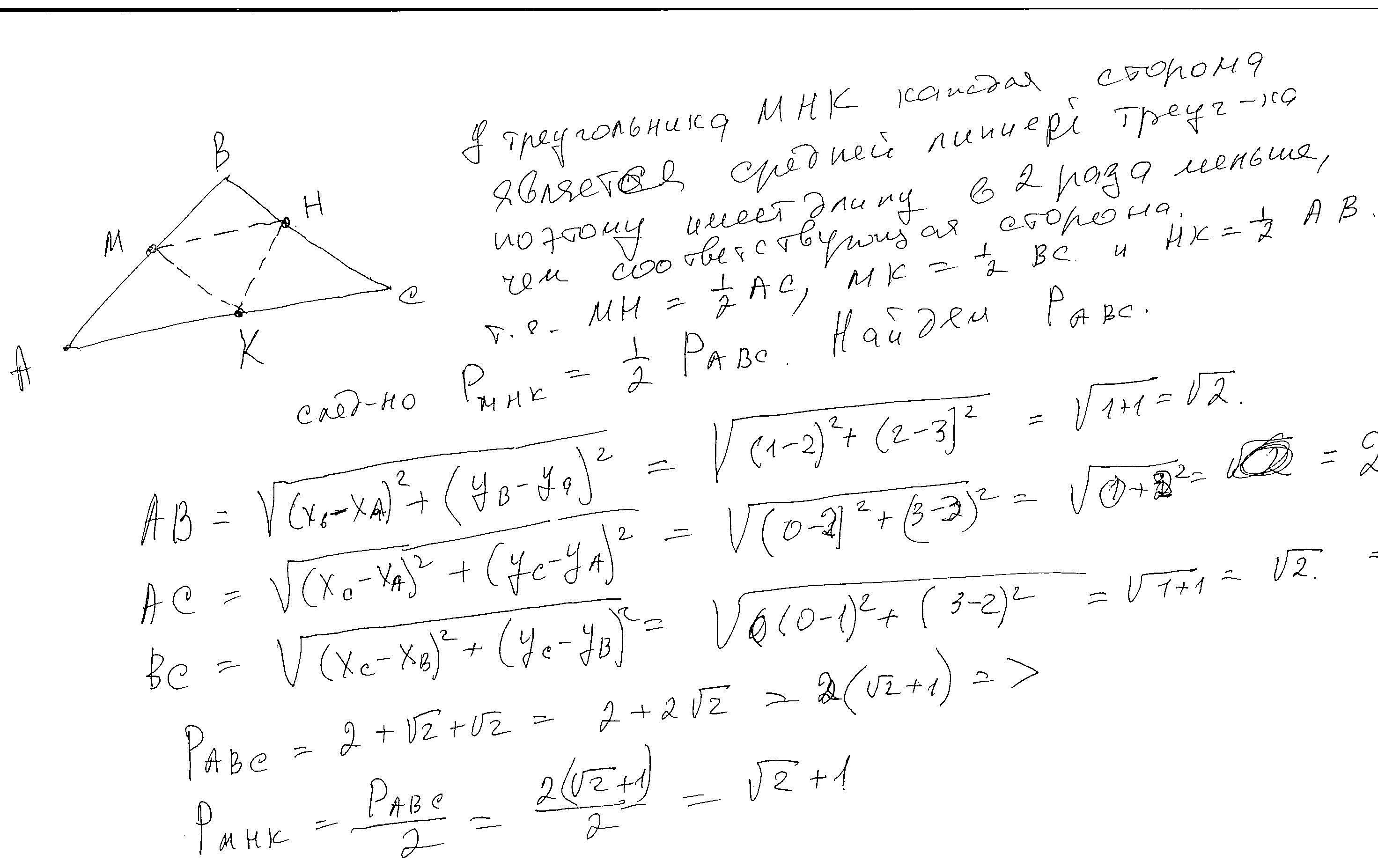 сторон треугольника АВС, если А (2;3), В (1;2), С (0;3).