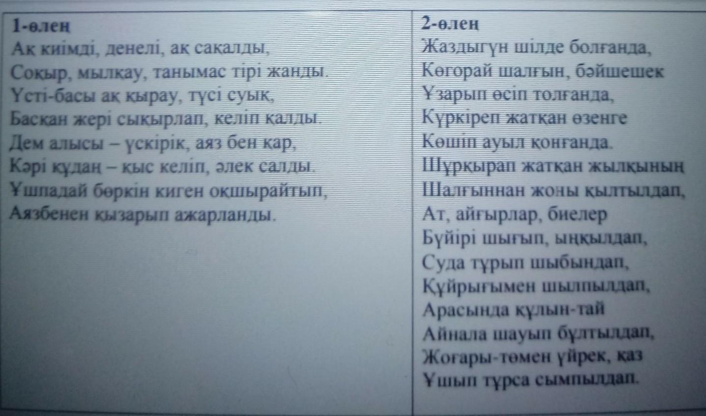Ответ: оба стихотворения о времени года первое о зиме, а второе о лете. Но различия их в том что в первом стихотворение зиму сравнивают с пожилым сватом, то есть уважая тем самым мы можем понять что автору (Абаю) нравится зима.