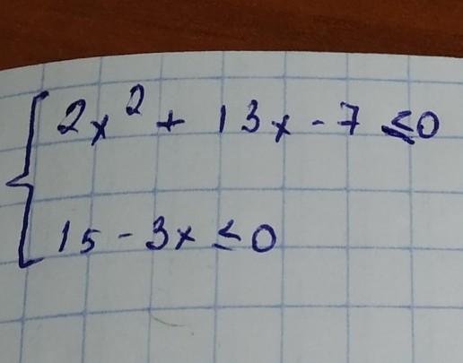 Так как коэффициент a положительный, то ветви будут направлены вверх, из-за чего промежуток [-7; 0.5] будет меньше или равен нулю.