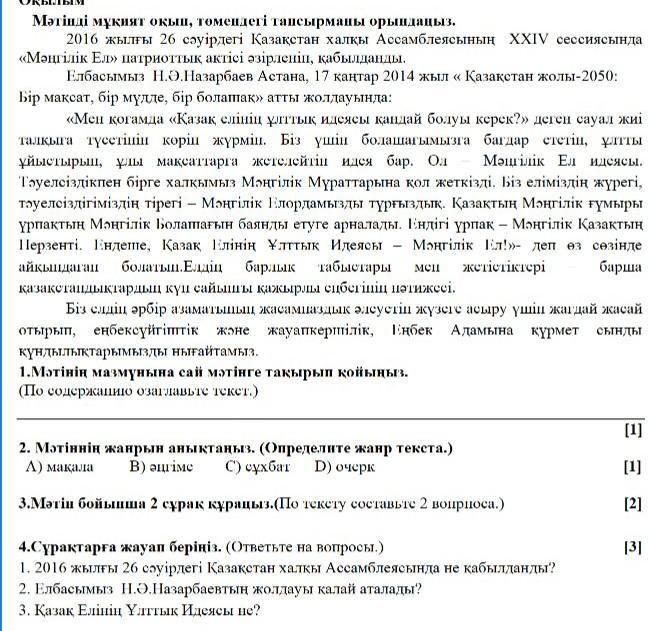 2. Мәтіннің жанрын анықтаңыз. (Определите жанр текста.)А) мақала В) әңгіме С) сұхбат D) очерк