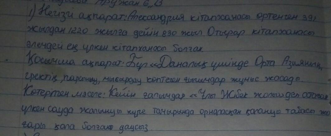 1.Мәтінді мұқият оқыңыз. Мәтіндегі негізгі, қосымша ақпараттарды және көтерілген мәселелерді ажыратыңыз. Негізгі ақпарат пен қосымша ақпаратты тауып жазыңыз.