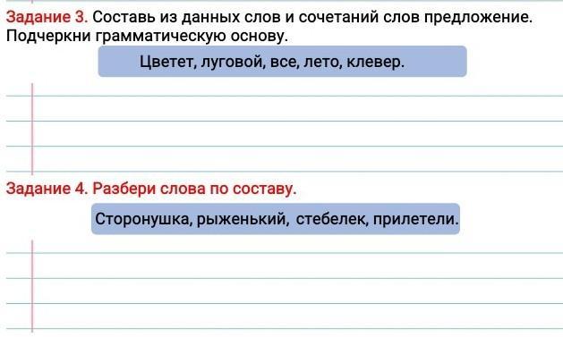 Задание 3. Составь из данных слов и сочетаний слов предложение.