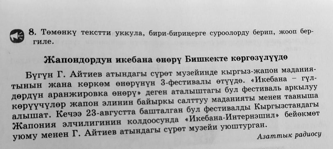 6) Бул фестиваль эмне үчүн уюштурулду? Кандай ойлойсуңар?
