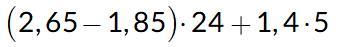 (2,65-1,85)*24+1,4*5=0,8*24+1,4*5=0,8*24+7=19,2+7=26,2
