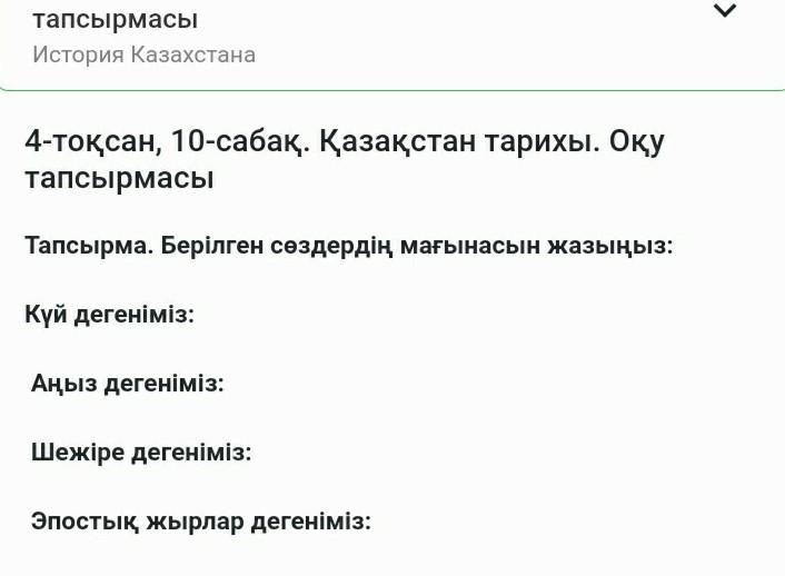 Тапсырма. Берілген сөздердің мағынасын жазыңыз:
