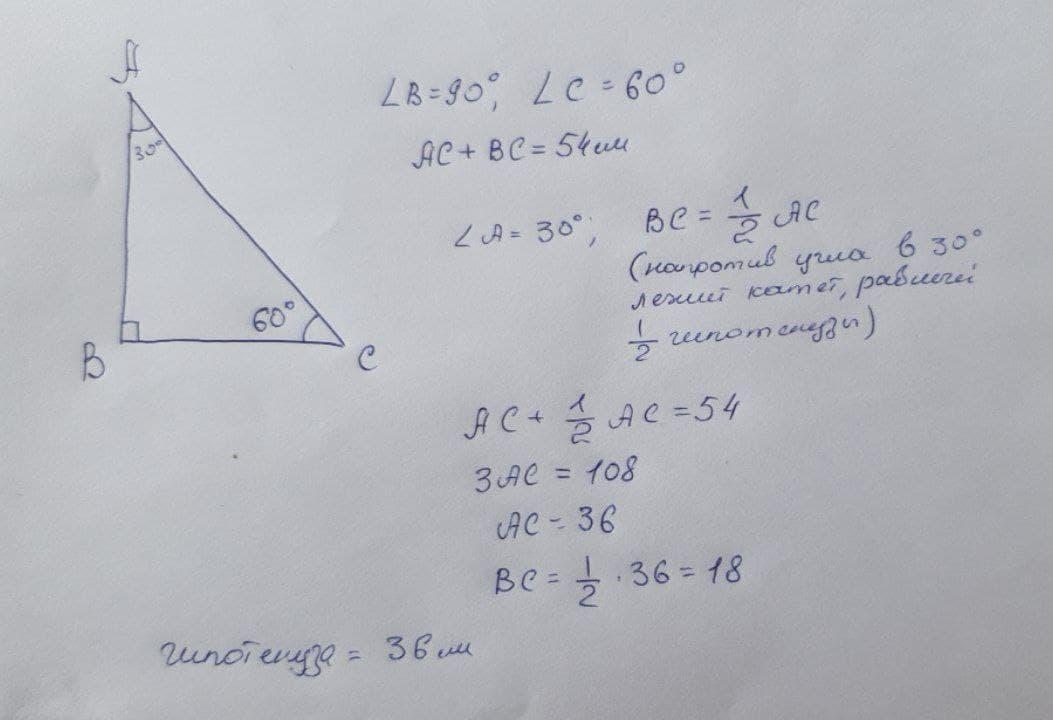 Объяснение: Катет прямоугольного треугольника, лежащий против угла в 30°, равен половине гипотенузы.