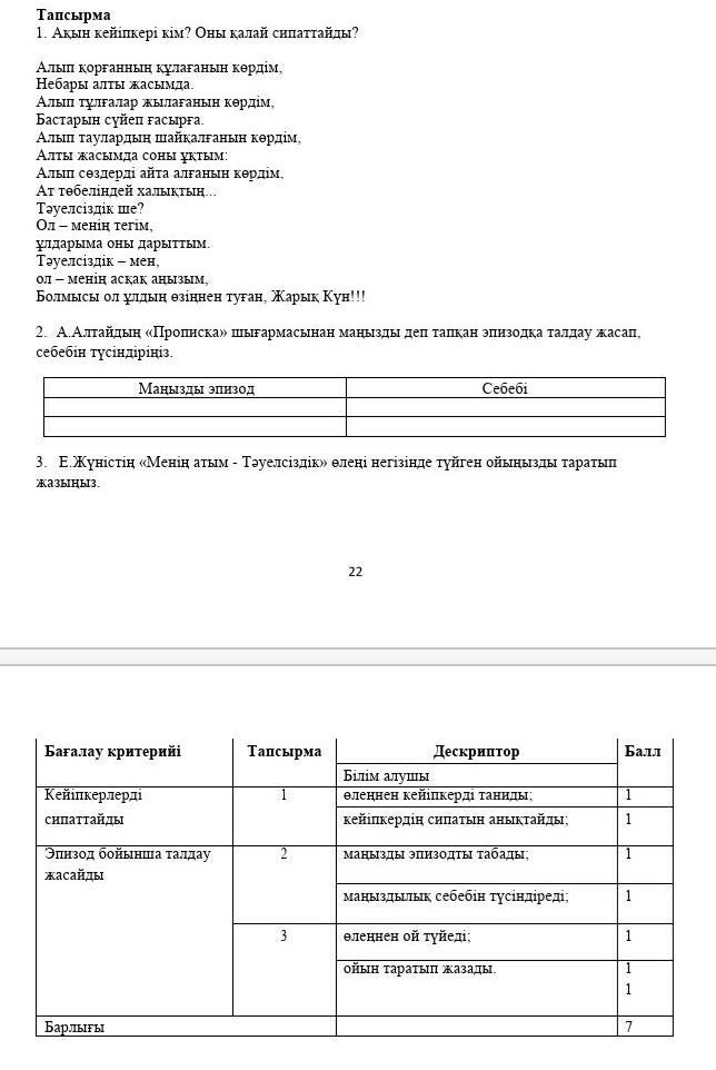 1.Ақын кейіпкері - 6 жасар бала.Өлең кейіпкері автордың өзі,6 жасында еліміздің тәуелсіздік алғанының куәсі болды.