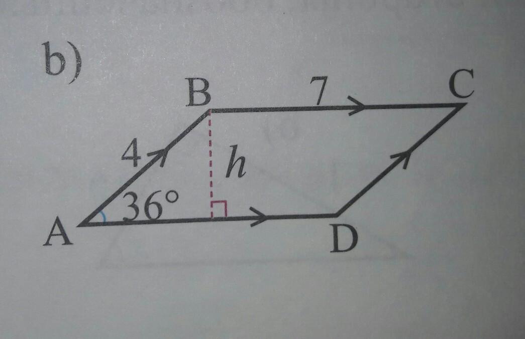 Трикутник, якому належить кут 36 градусів, - прямокутний. За відношенням маємо: sin36 = h/4; звідси h = 4*sin36= 1,18