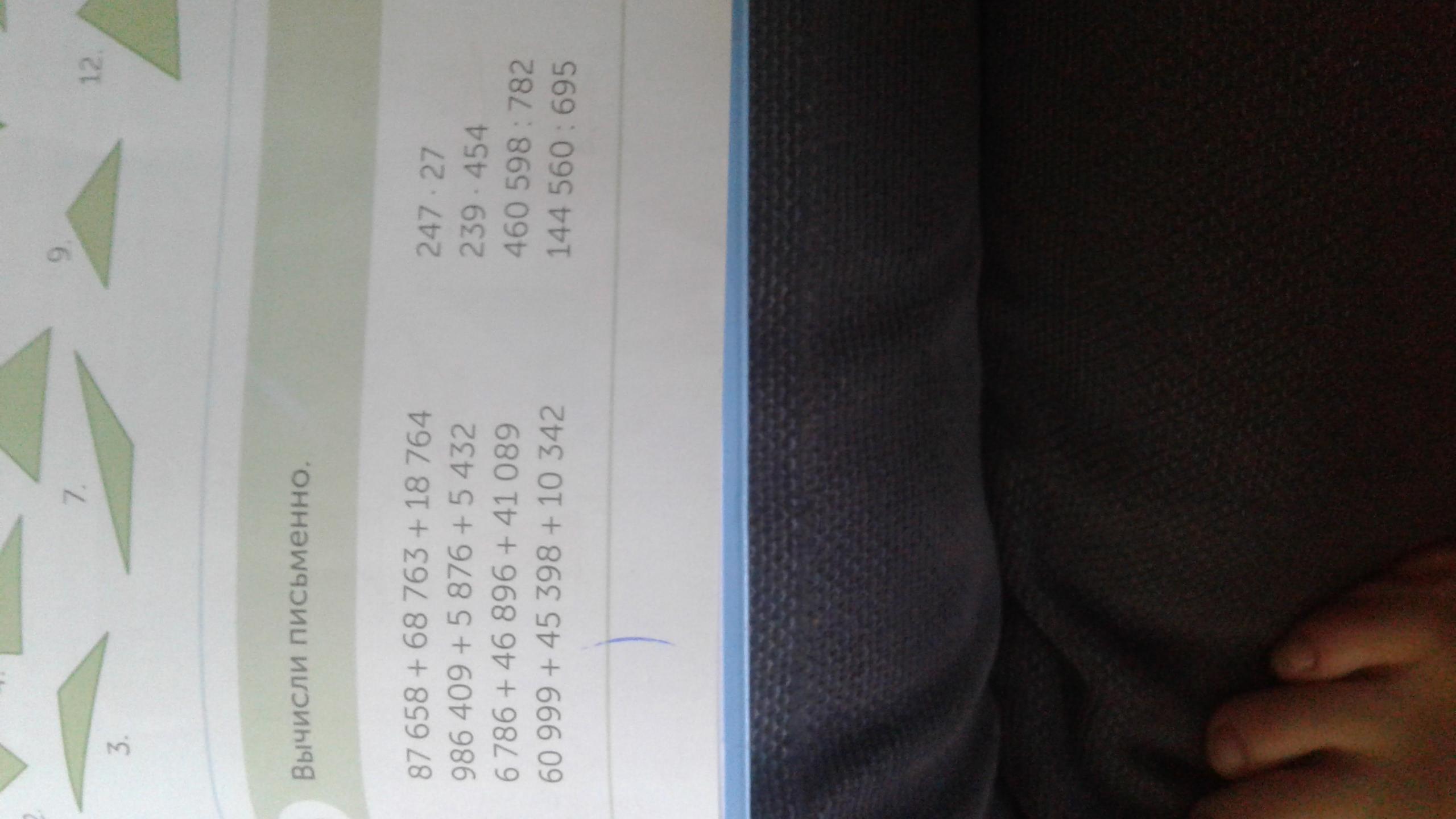 4) 6099 9 + 45 398 плюс 10 342 5) 246 x 27 6)239 X 454 7) 465 98 : 7 82 8) 144 560 : 695