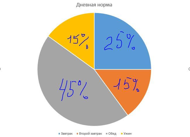 Постройте круговую диаграмму распределения дневной нормы питания.