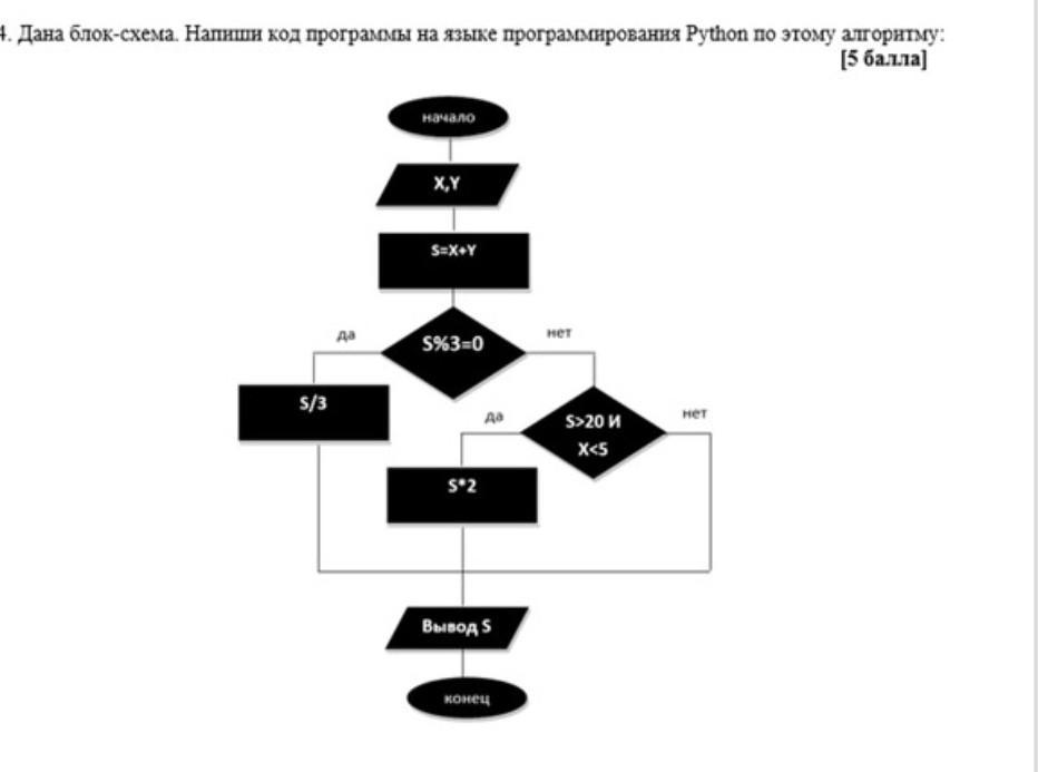 4 Дана блок-схема. Наши код программы на языке программирования Python по этому алгоритму