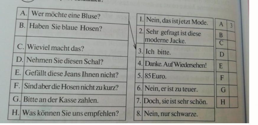 A.| Wer möchte eine Bluse? 1. Nein, das istjetzt Mode.