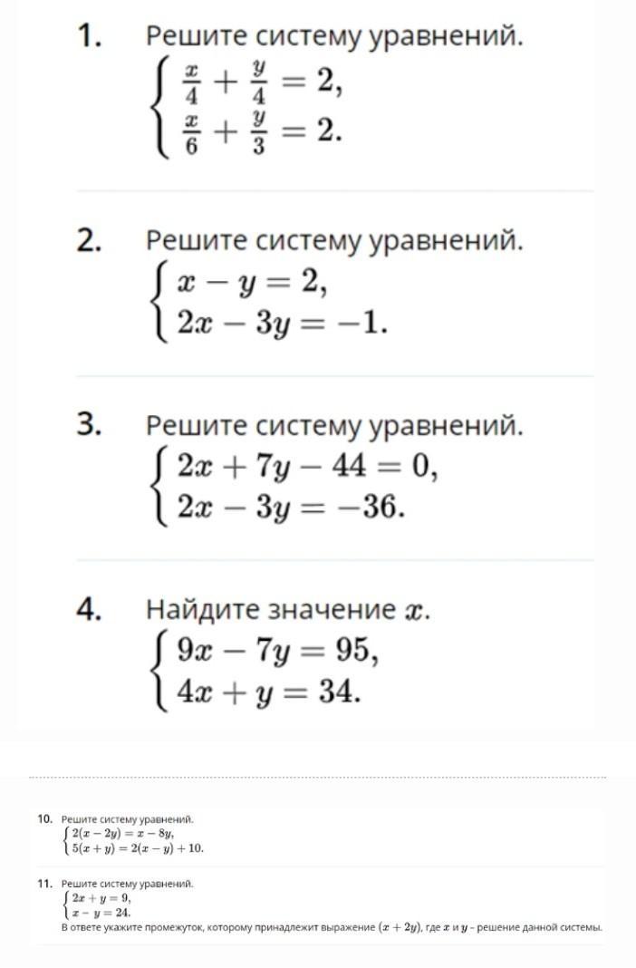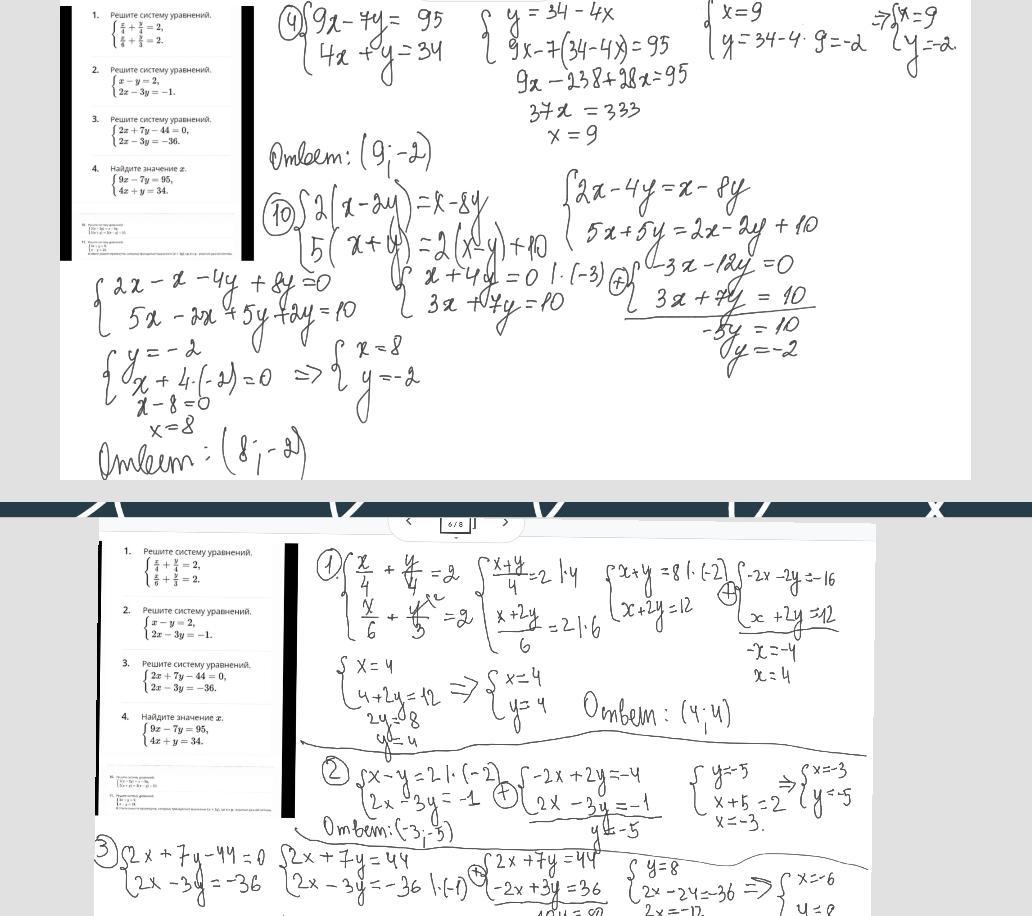 Вот, расписала решение систем уравнений методами сложения и подстановки