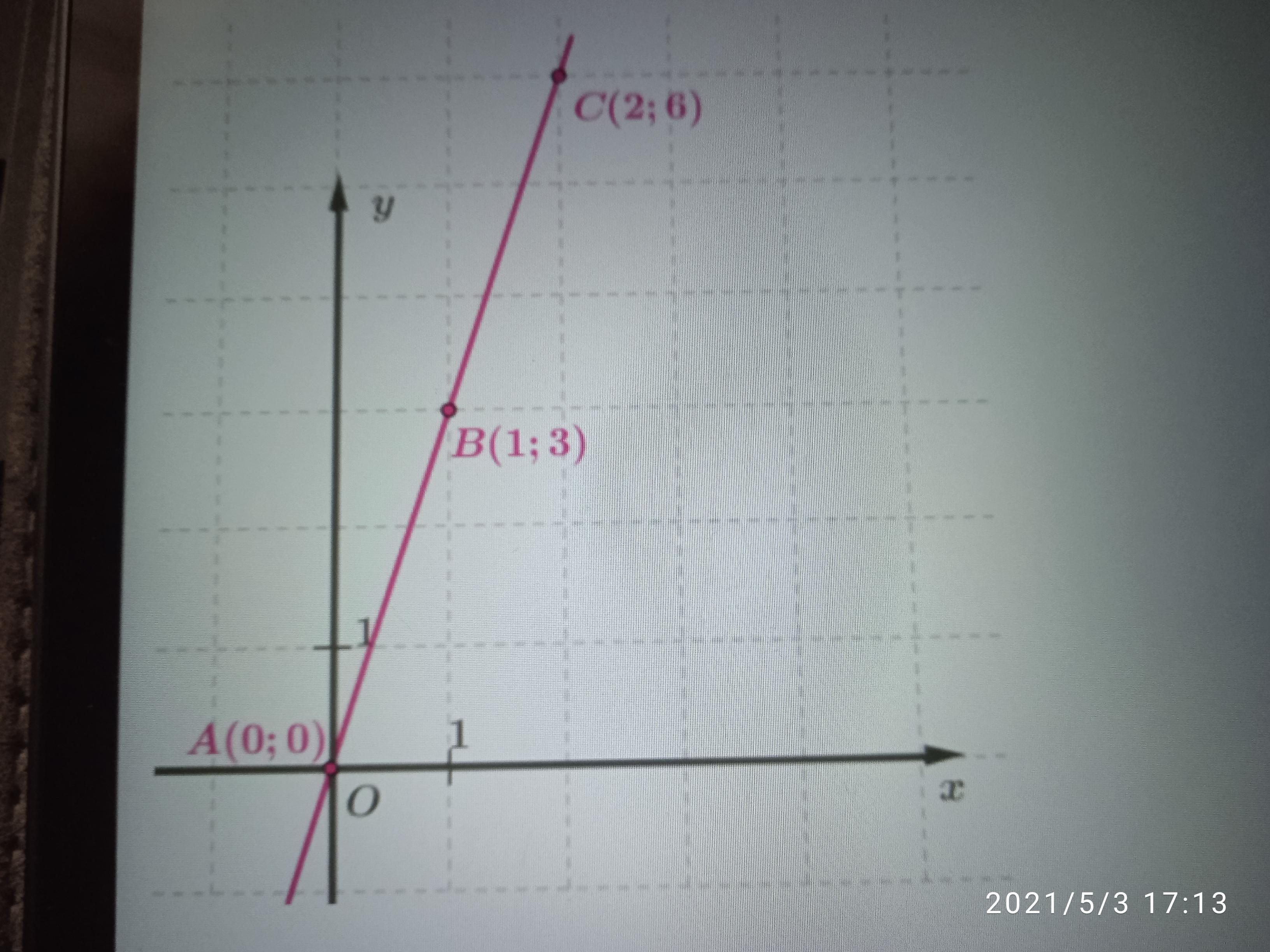 По графику видим, что при увеличении абсциссы на 1 ордината увеличивается на 3