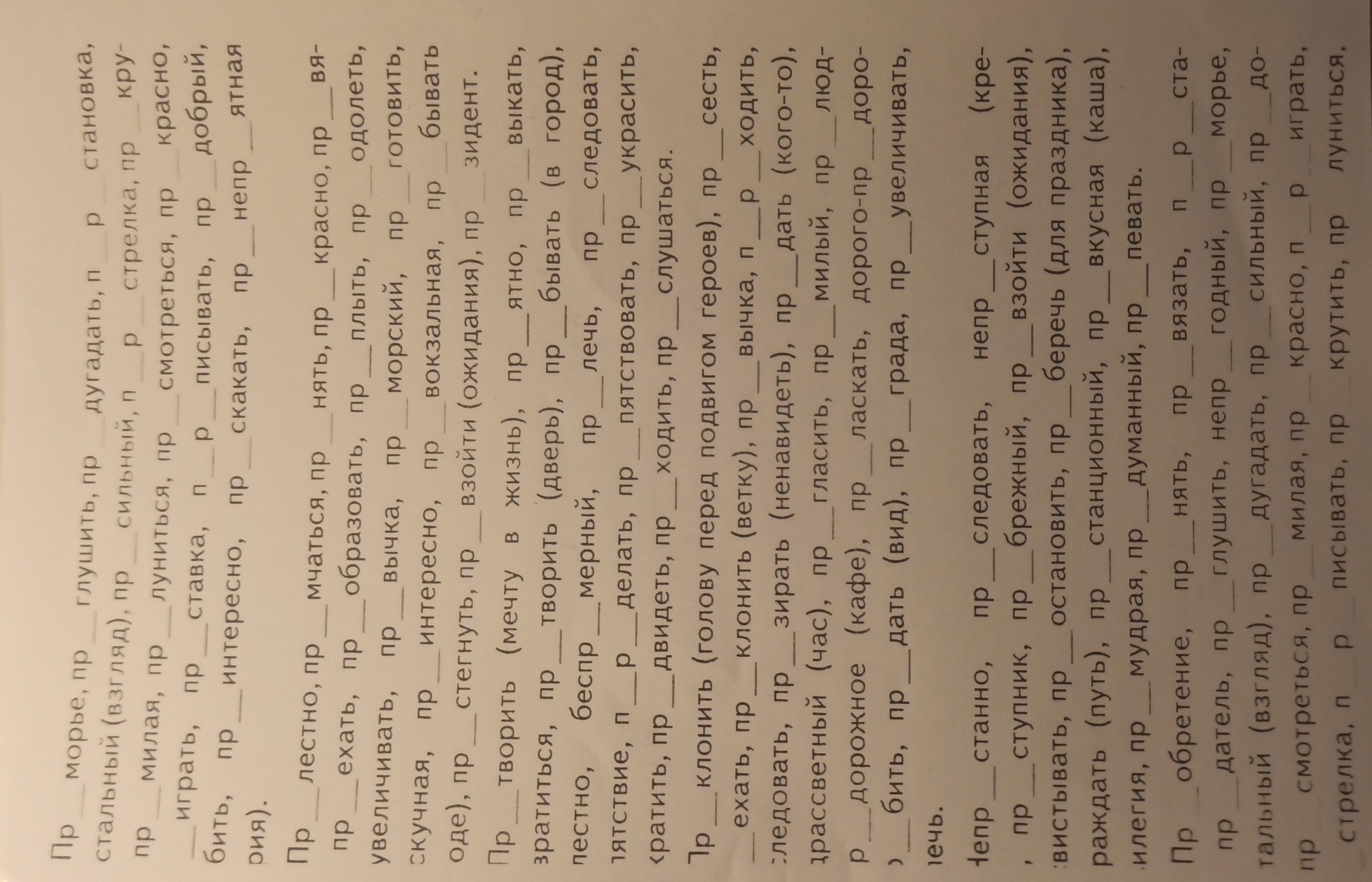 Приморье, приглушить, предугадать, перестановка, пристальный (взгляд), перестрелка, присмотреться, прекрасно, приставка, переписывать, прискакать.