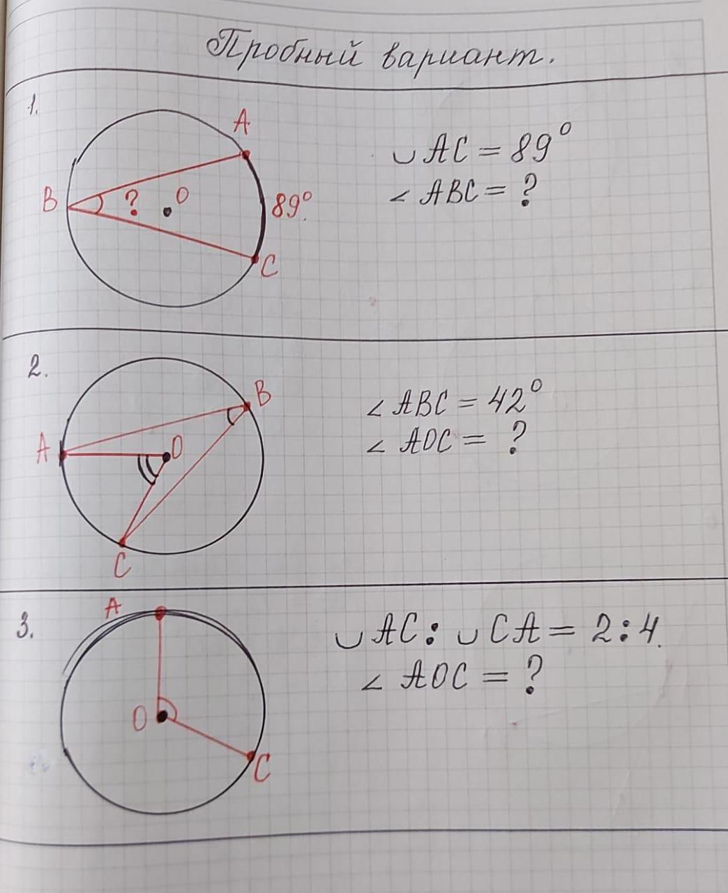 3)вся окружность=360 град. тогда 4х+2х=360град. 6х=360град. х=60. меньшая дуга ас= 2*60=120град. угол центральный и равен 120град.