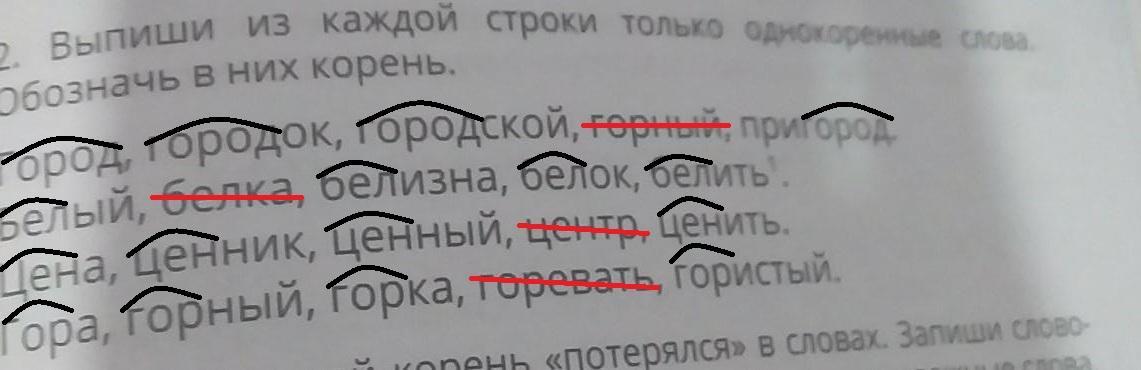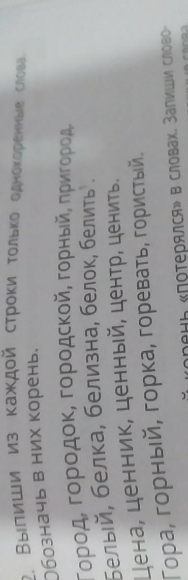 СРОЧНО выбери 2 строки выпиши из каждой строки только однокореные слова обозначь в них корень