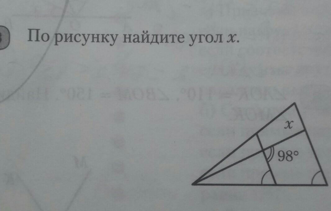 Пошаговое объяснение: часть х и часть с градусом 98 всего 180 градус выходит 180-98=62