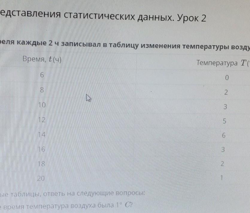Тамерлан 3 апреля каждые 2 ч записывал в таблицу изменения температуры воздуха сбч до 20 ч.