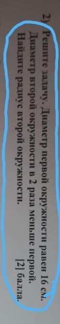 Решите задачу диаметр первой окружности равен 16 см диаметр второй окружности 2 раза меньше найдите радиус второй окружности. Пж Пж