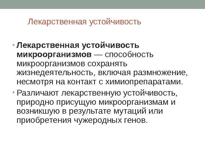 – это способность микроорганизмов сохранять жизнедеятельность, включая размножение, несмотря на контакт с химиопрепаратами.