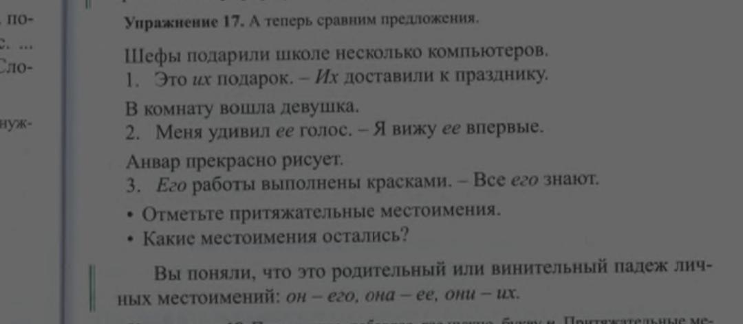 притяжательные местоимения: их подарок, её голос, его работы. Остальные местоимения - личные