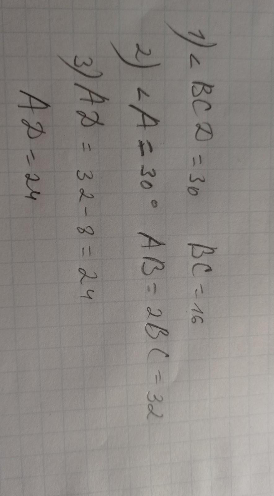 AD=CD×ctg30=8корень3 ×корень3 =