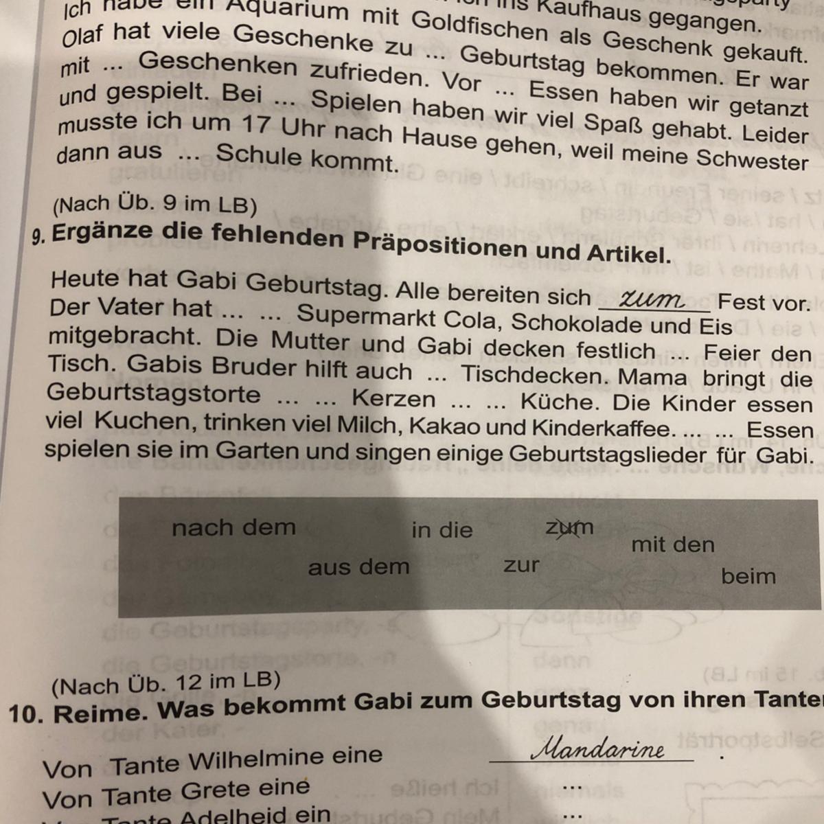 9. Ergänze die fehlenden Präpositionen und Artikel.