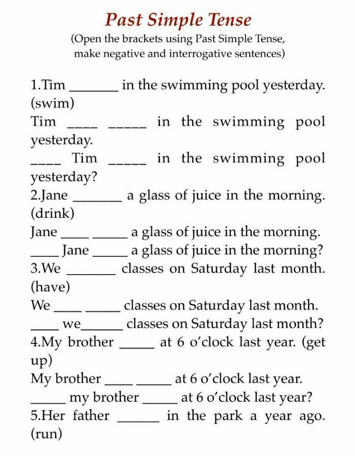 Ответ:1.swam, didn't swim, Did Tim swim. 2.drank, didn't drink, did Jane drink. 3. Had, didn't have, did we have. 4. Got up, didn't get up, did my brother get up.