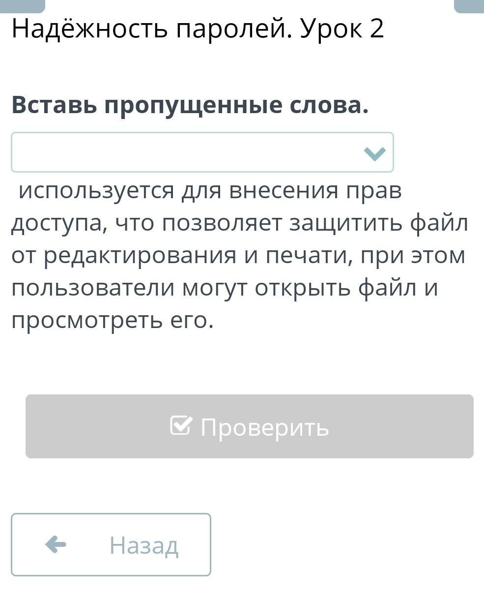 варианты ответов: пользовательский пароль, закрытый пароль, главный пароль, надёжный пароль.