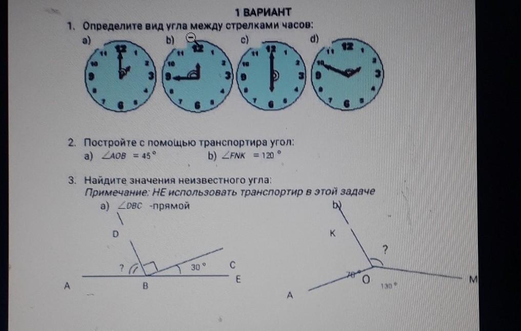 1 Определите вид угла между стрелками часов