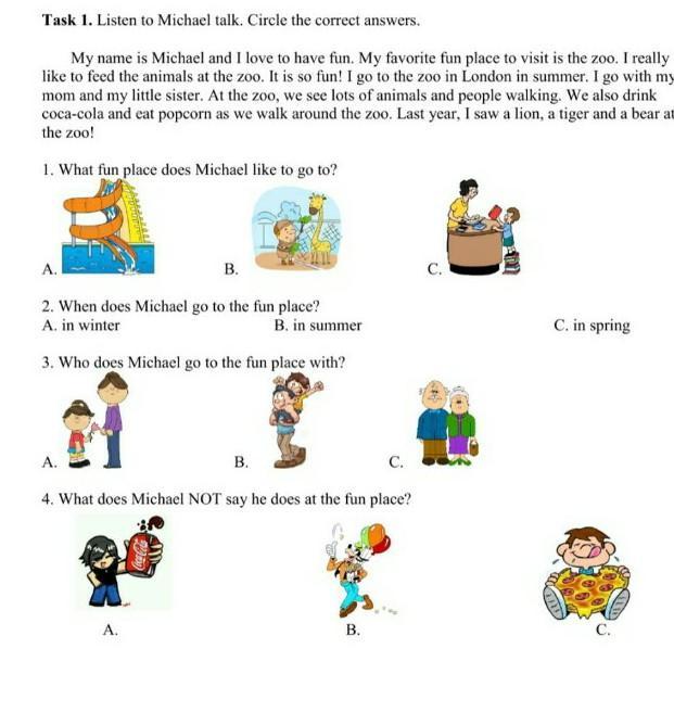 - What fun place does Michael to go to? ответ : B ) zoo.