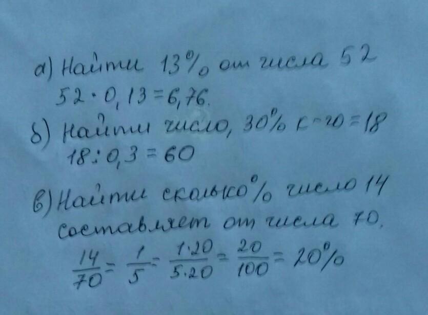 в) Найдите сколько процентов число 14 составляет от числа 70.