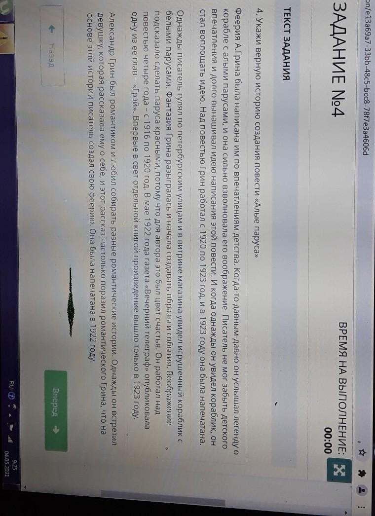 корабле с алыми парусами, и она сильно взволновала его воображение. Писатель не мог забыть детского