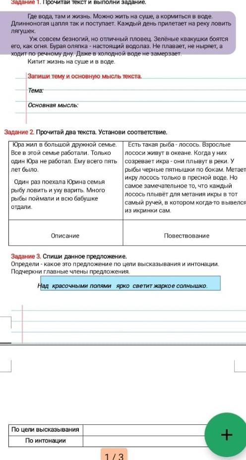 1 задание основная мысль : Жизнь может быть как в воде так и на суше.