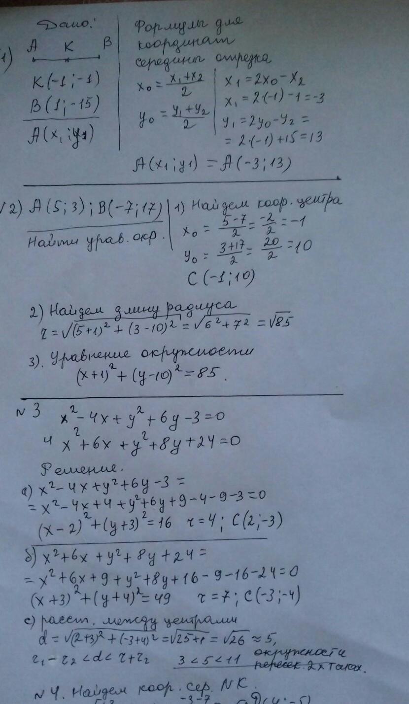 №2. Даны точки А(5;-3), B(-7;17). Найдите уравнение окружности,