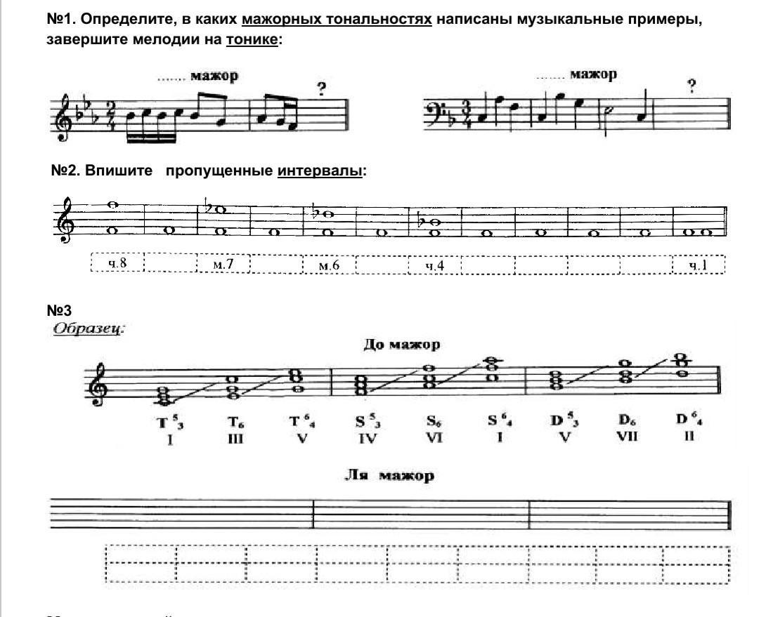 Определите, в каких мажорных тональностях написаны музыкальные примеры, завершите мелодии на тонике: