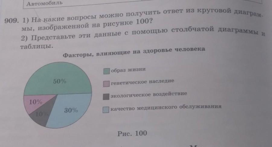 N909 1) на какие вопросы можно получить ответ из круговой диаграммы,изображенной на рисунке 100?