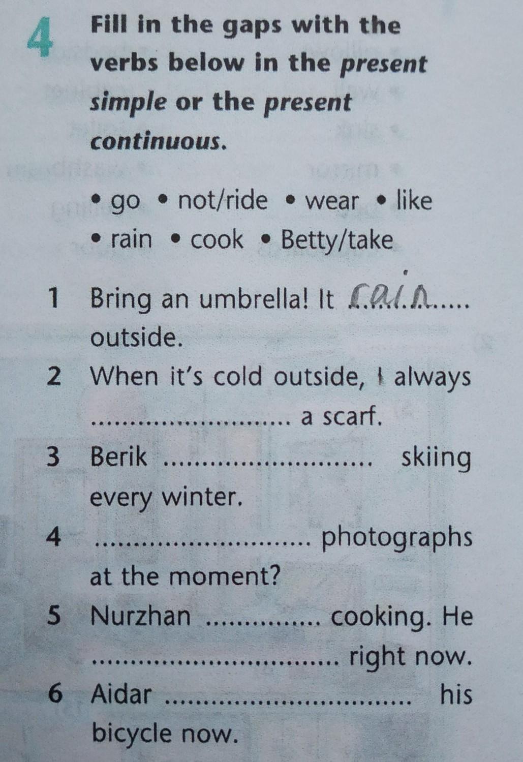 2 wear 3 like 4 Betty/take 5 not/ride 6 going