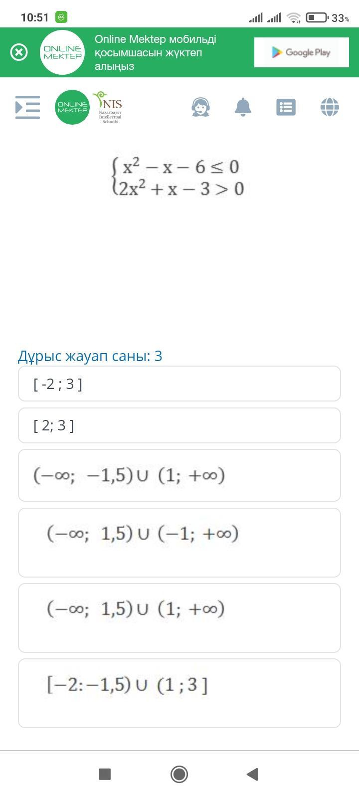 Бізде жауап : |-2 ; -1,5)U(1 ; -3|