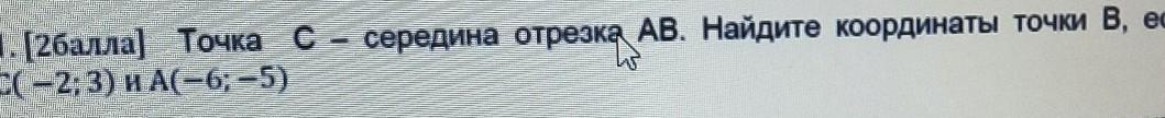 точка С-середина отрезка АВ.Найдите координаты точки В если С(-2;3)и А(-6;-5)