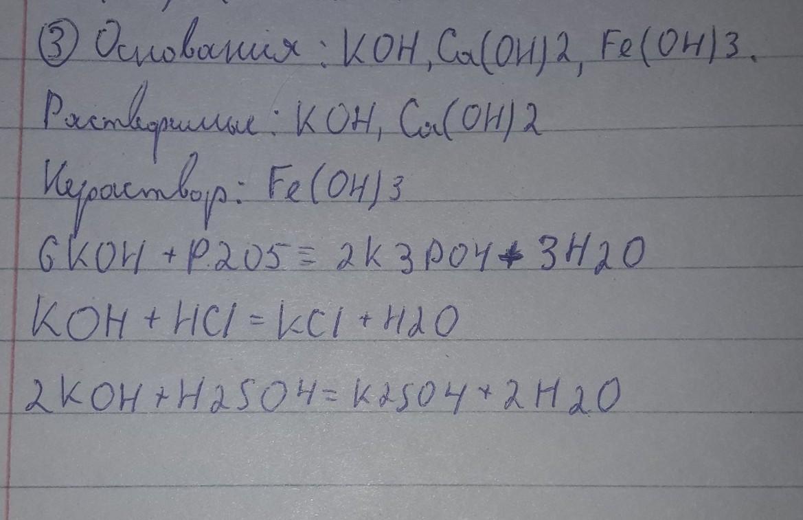 Задание №3. Даны формулы неорганических соединений: CaO, KOH, P2O5, HOH, Ca(OH)2, HCl, CuO, Fe(OH)3, H2SO4. С какими веществами будет реагировать КОН?